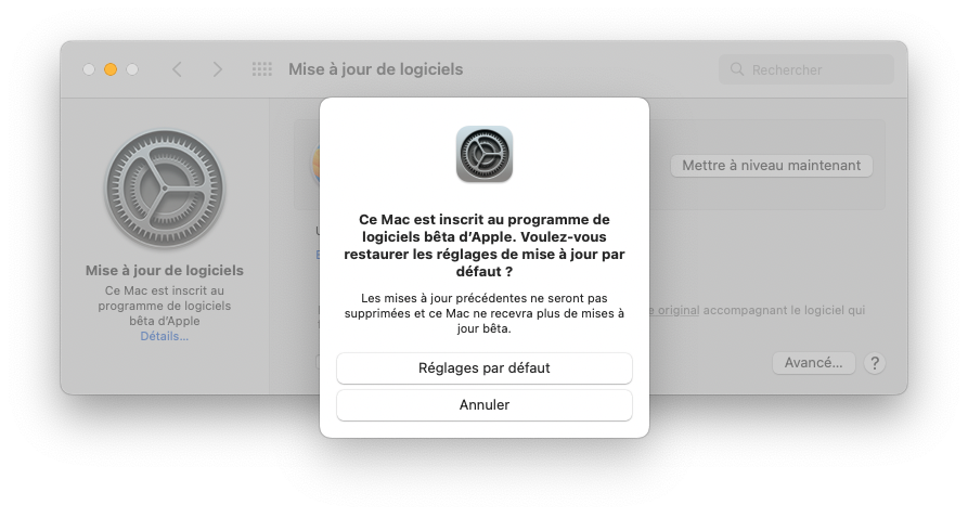 2. Restaurer (réinitialiser) votre Mac avec la sauvegarde effectuée avant l’installation de la bêta ou faire une clean install (comme un nouveau Mac). Seule option si vous avez une bêta développeur.