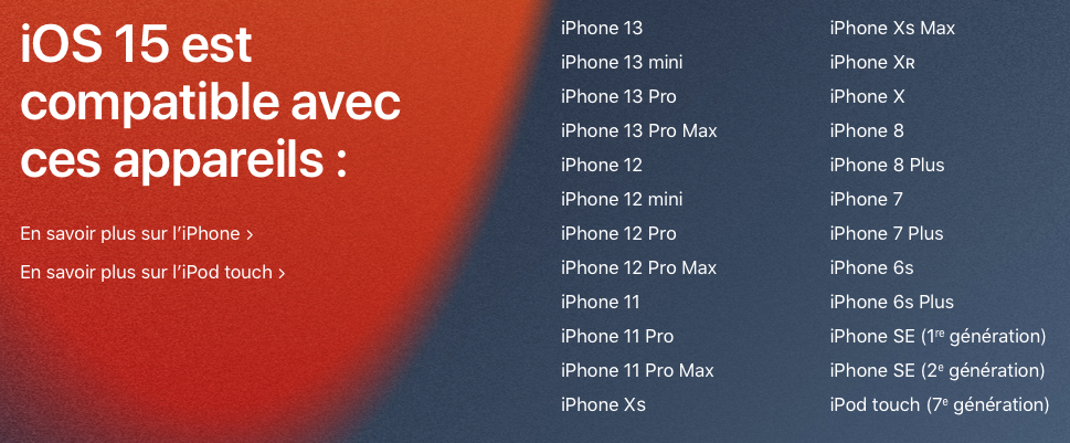 Voici la liste complète des iPhone compatibles avec iOS 15 :