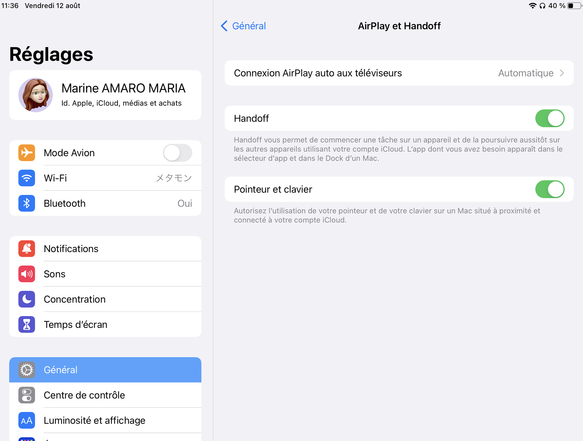 - allez à Réglages > Général > AirPlay et Handoff ;