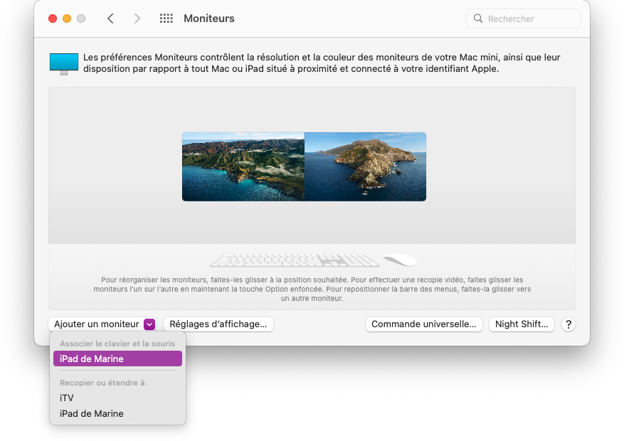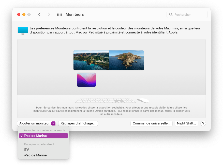 À partir de là, soit votre Mac et iPad communique déjà parfaitement entre eux : votre Mac détecte où est positionné votre iPad pour que vous n’ayez plus qu’à glisser la souris dans sa direction. Soit vous devez faire un réglage supplémentaire.