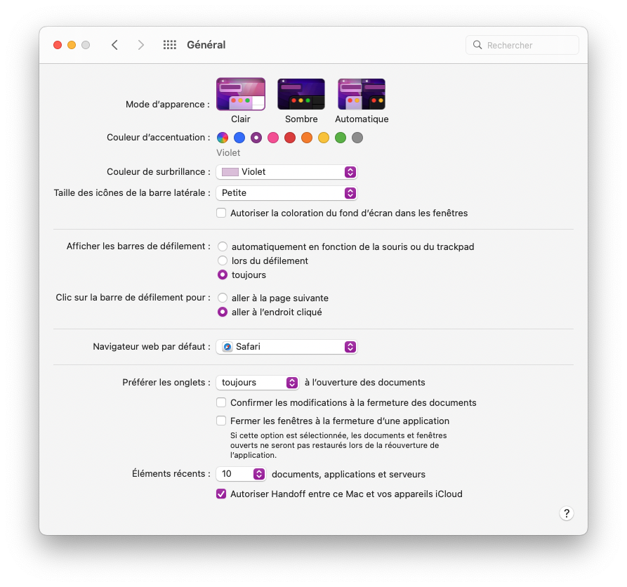 - cochez Autoriser Handoff entre ce Mac et vos appareils iCloud, situé tout en bas de la fenêtre.